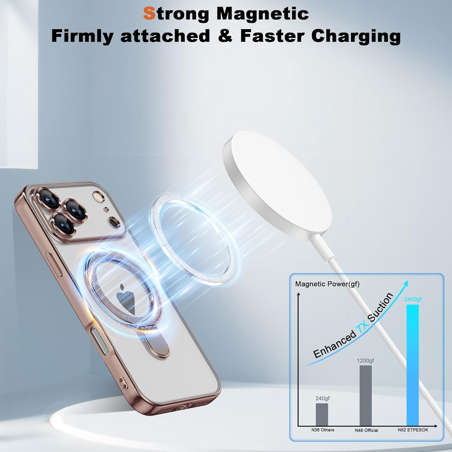 ETPESOK Phone Case Compatible with iPhone 17 Pro Max Case with Magnetic Ring Stand [Compatible with Mag-safe] [Full Camera Lens Protector] Plating Clear Phone Case for iPhone 17 Pro Max 6.9", Desert Gold
